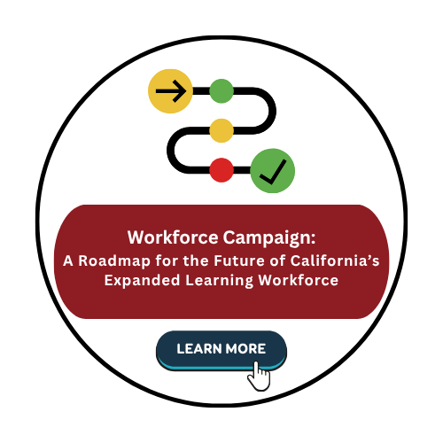 We are working to increase the recognition of the expanded learning workforce by promoting and advancing career pathways and pipelines, and creating a statewide workforce campaign.