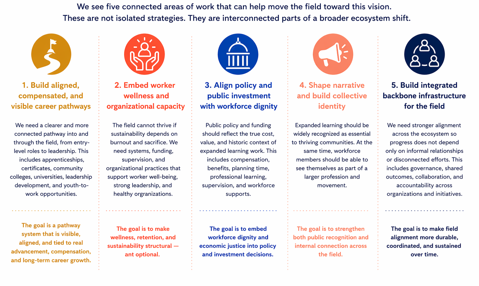 When we align pathways, embed workforce dignity in policy, design for sustainability, and build collective identity — then expanded learning becomes a stable, respected profession that ensures universal access, thriving communities, and a sustainable, intergenerational workforce.