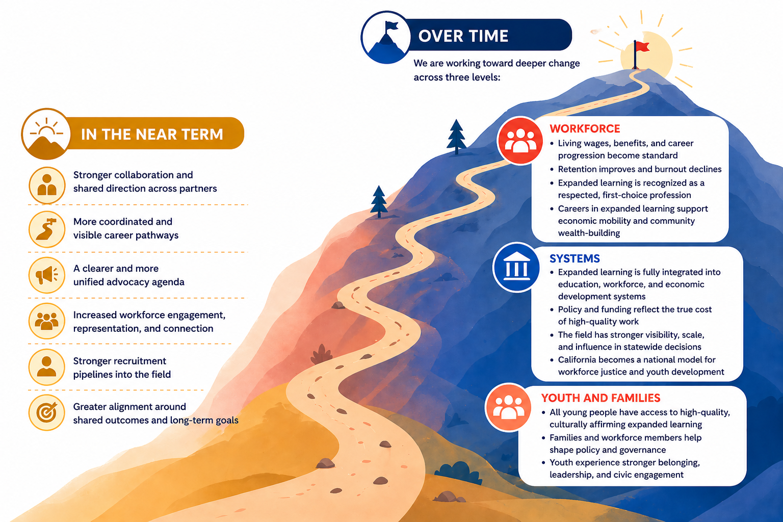 Through two statewide Summits, deeper and more coordinated partnering on projects, and a half dozen strategy sessions, the collaborative is working toward a future where expanded learning is recognized not as supplemental, but as essential civic infrastructure. We believe that when we invest in the people who nurture young people, workforce dignity, youth success, and community well-being rise together.